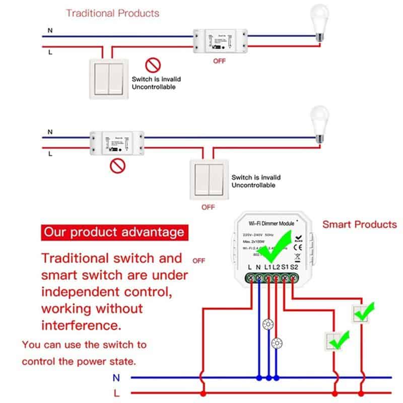 - Override feature of the existing non smart light switch. meaning the existing non-smart light switch can be ON or OFF (non -interfering)