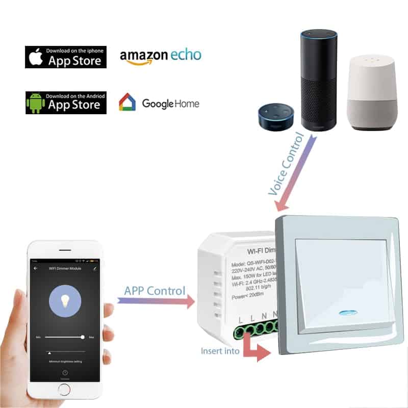- Smart dimmer switch google home Supports Voice Commands and also AI units such as Amazon Alexa Echo and Google Home solution.
